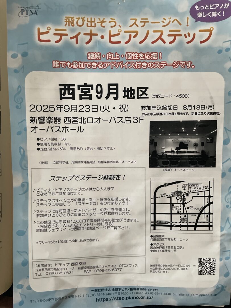 9月23日秋分の日この教室からも数名ピティナピアノステップに参加され演奏の成長に驚かされることがたくさんあります。